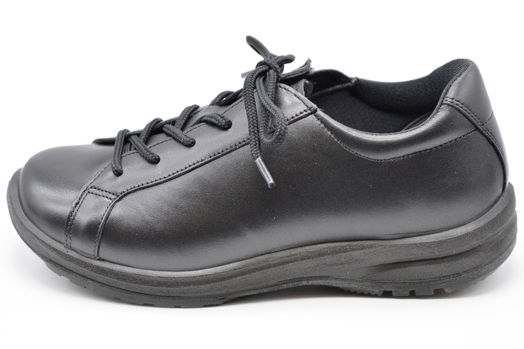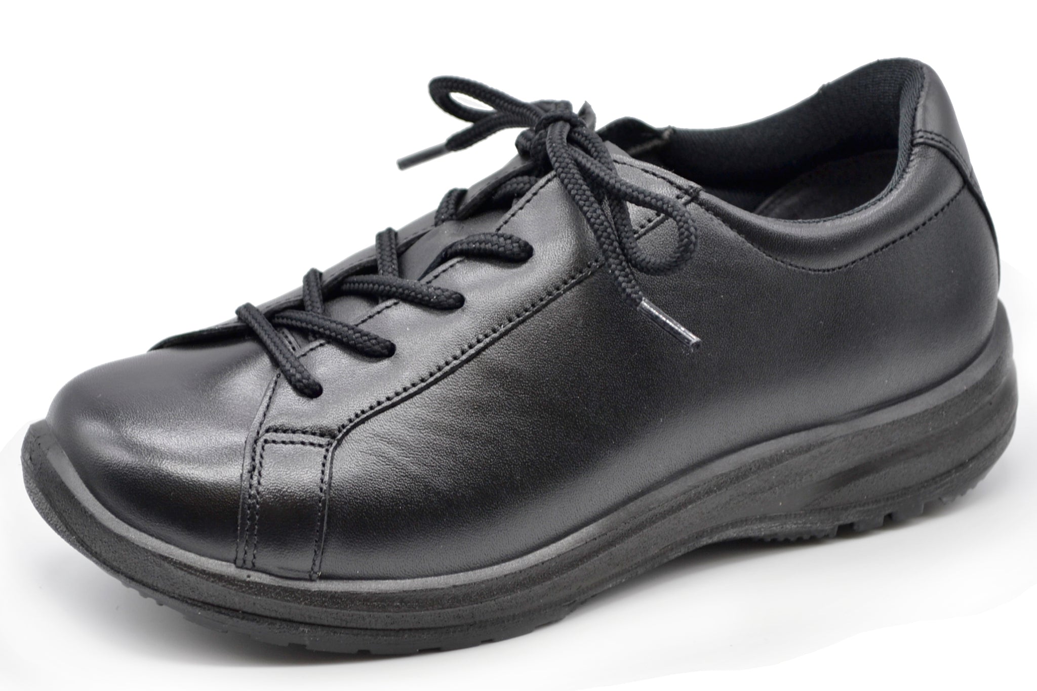 アッパーにはやわらかい天然皮革を使用しソフトな足ざわり_