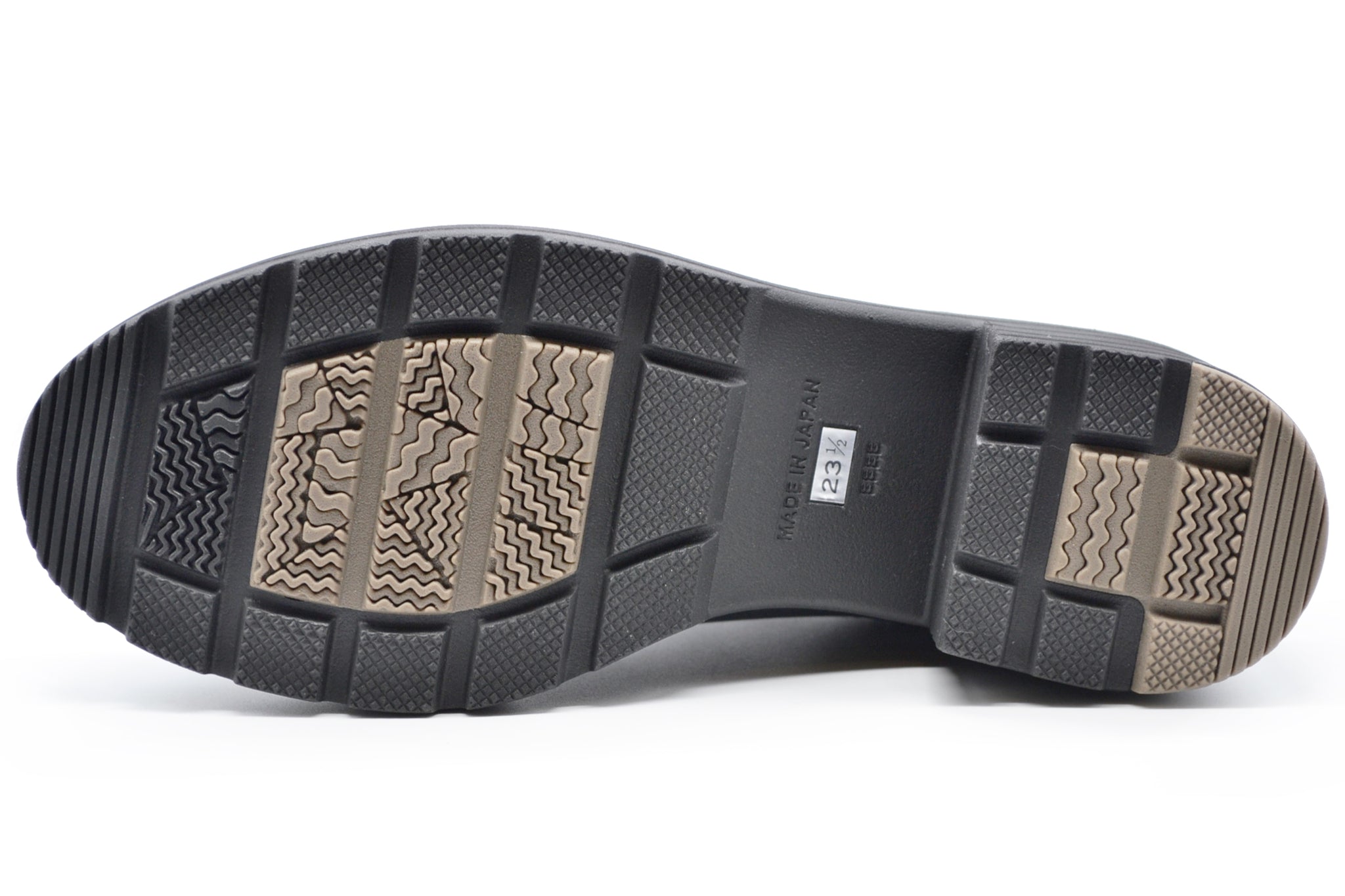 一見ヒールが高く負担になりそうですが、つま先側のソールも厚みがあるため、実際の高低差は3cm程度と通常のお靴と大きく変わりません。
